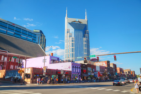 NASHVILLE - AUGUST 28: Downtown Nashville with people on August 28, 2015 in Nashville, TN. Nashville is the capital of the State of Tennessee and the county seat of Davidson County.