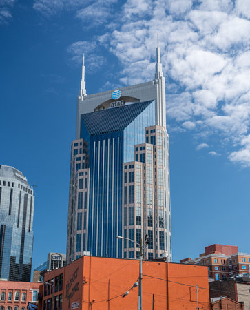 Nashville, Tennessee - 28 June 2021: Detail of the main buildings of the financial downtown district of Nashville including ATT and wework