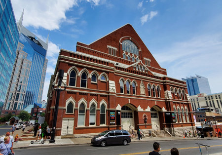Nashville, Tennessee - January 10, 2022: Exterior of the historic Ryman Auditorium, famous for its country music shows and concerts