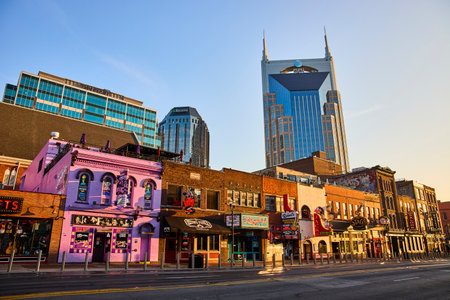 Historic Nashville Buildings with Skyscrapers at Golden Hour Perspective