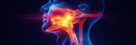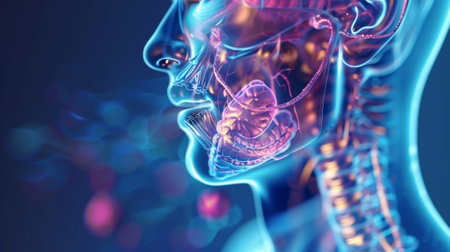 Detailed visualization showcases the anatomy of the human throat and oral cavity, emphasizing biological features and structures.