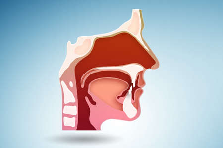 Anatomy of the nose and throat. Human organ structure. tonsil anatomy, teeth, polyps, rhinitis, sore throat, 3d render, 2d graphic, illustration