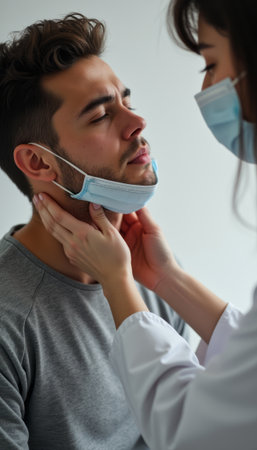 Doctor examining a patient with a mask