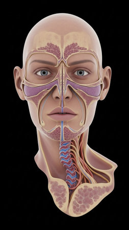 Detailed anatomical model of the human respiratory system nasopharynx showcasing nasal passages and throat structure