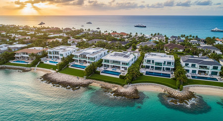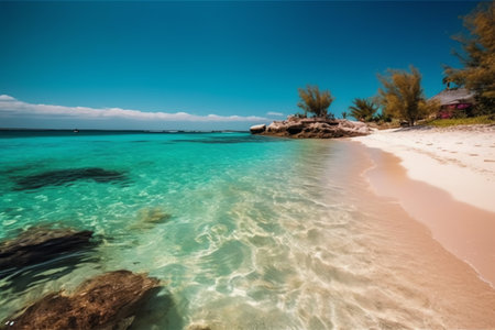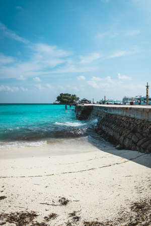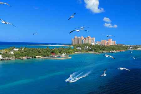 The view of a beach coastline on Paradise Island, popular vacation destination in The Bahamas.