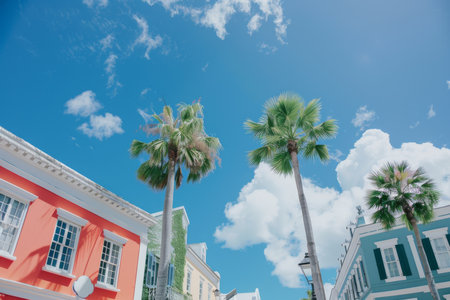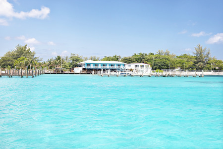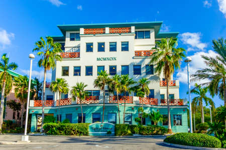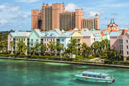 Beautiful scene of colorful houses and a hotel in Nassau, Bahamas on a summer sunny day