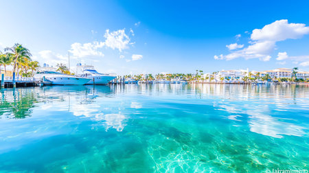View of colorful buildings in Miami Beach, Florida, Promenade at the marina of Bridgetown, Barbados, AI Generated