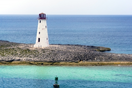 Small, charming lighthouse at the entrance of Nassau Harbor - Bahamas
