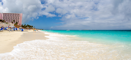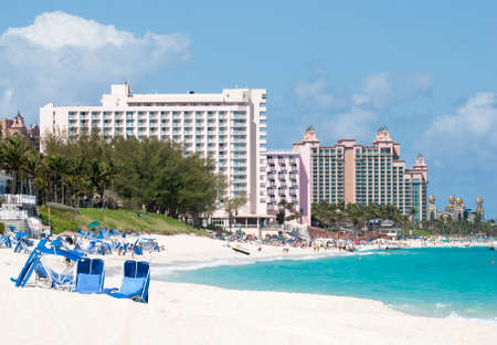 NASSAU, BAHAMAS - FEBRUARY 06, 2014: Tourists on the beach at Nassau Bahamas USA