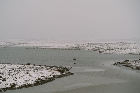 Rainy day on the shore of Tbilisi sea in early spring, capital city of Georgia