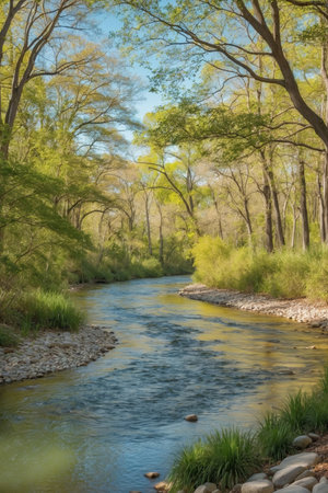 AI Generated. Graceful River Running Through Beautiful Forest