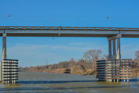 Vintage bridge on Highway Ninety over the East Pearl River in Louisiana.
