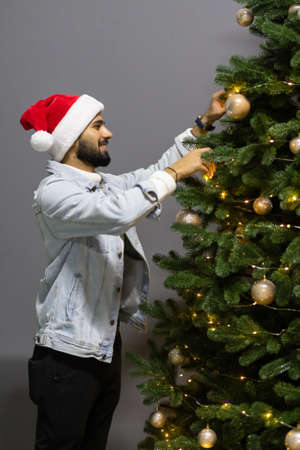 Hanging Christmas decorations and ornaments in the Christmas tree
