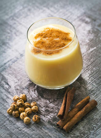 Homemade Eggnog with Hazelnuts and Cinnamon in Glasses
