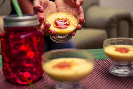 Custard, sweet and creamy dessert. Made with cow's milk and eggs.