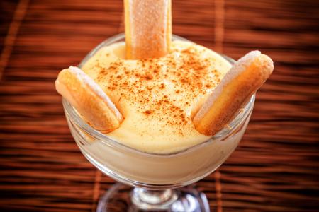 Homemade vanilla cream with biscotti and cinnamon