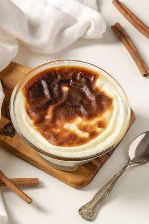 Baked rice pudding turkish milky dessert sutlac (Turkish name; firin sutlac)