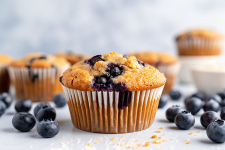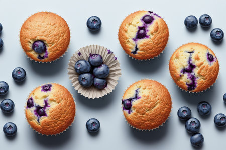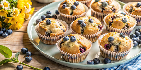 Berrylicious Delights Blueberry Muffins on Blue Background