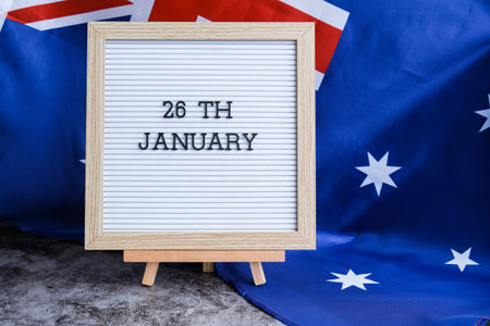 Letterboard with text 26th JANUARY national day promotions. Trendy patriotic mockup with date emphasis Australian flag