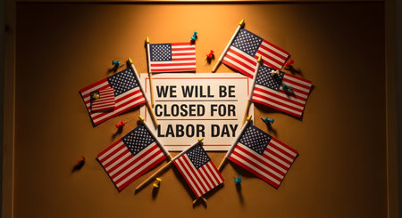 We will be closed for labor day sign on the wall in USA