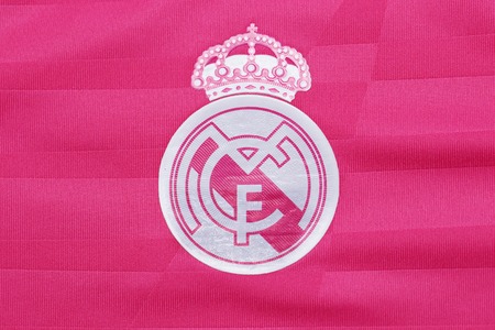 BANGKOK, THAILAND - FEBRUARY 14, 2015: the logo of real madrid on their pink jersey on February 14, 2015 in Bangkok Thailand.