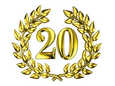 Illustration for the anniversary celebration - Golden figure of 20 (twenty) in a gold wreath isolated on a white background