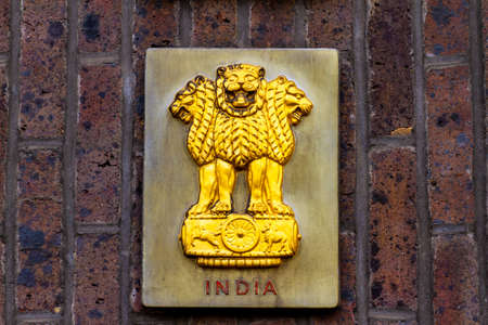 A representation of the Lion Capital of Ashoka was initially adopted as the emblem of the Dominion of India in December 1947 showing 4 lions facing in the four compass directions