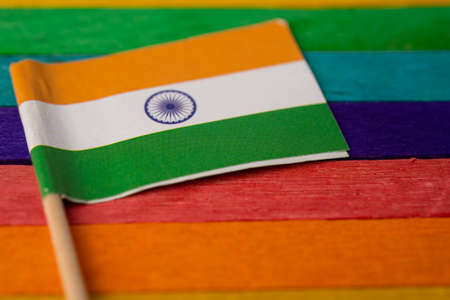 India flag on rainbow background symbol of LGBT gay pride month social movement rainbow flag is a symbol of lesbian, gay, bisexual, transgender, human rights, tolerance and peace.