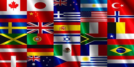 Colorful collage of flags of different countries of the world.