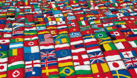 A representation of unity and friendship among nations, depicted through a multitude of national flags.