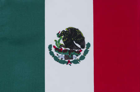 The national flag of Mexico is a close-up on a fabric basis