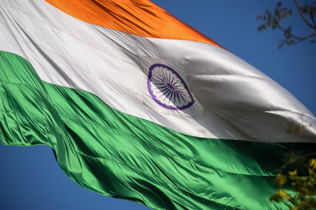 The Indian Flag flying high on top of a flag pole