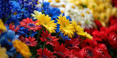 Bright, colorful flowers in a stunning arrangement create a joyful and vibrant scene.