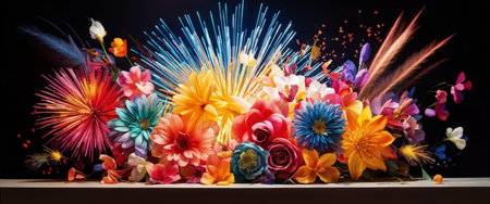 Vibrant bouquet of assorted flowers in vivid colors against a black background, perfect for floral arrangements, home decor, or seasonal celebrations
