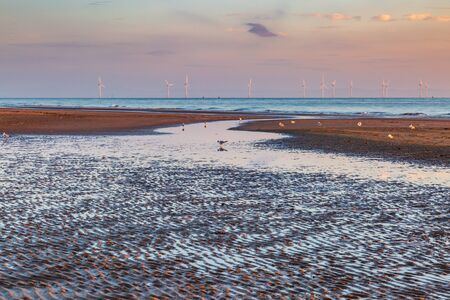 mudflats of breskens beach during sunset, Zeeland, The Netherlands