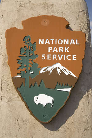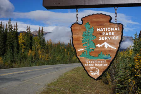 AUGUST 8 2018 - SEWARD, ALASKA: Sign and emblem for the United States National Park Service, Department of the Interior
