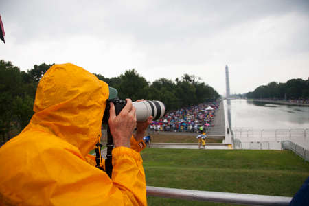 Photographer Joseph Sohm with Canon zoom lens takes pictures at Martin Luther King 50th Anniversary of I Have A Dream Speech