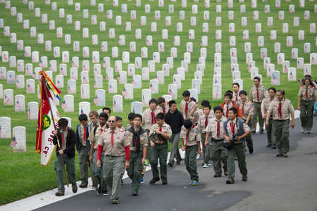 Boyscouts place 85, 000 US Flags at Annual Memorial Day Event, Los Angeles National Cemetery, California, USA