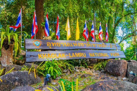 Khao Lak Thailand February 09, 2020 Welcome entrance wooden information boards in the Lam ru Lamru National Park in Khao Lak Phang-nga Thailand.