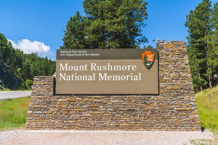 mount Rushmore national memorial,south dakota,usa. 07-28-17: mount Rushmore natonal memorial sign in the entrance