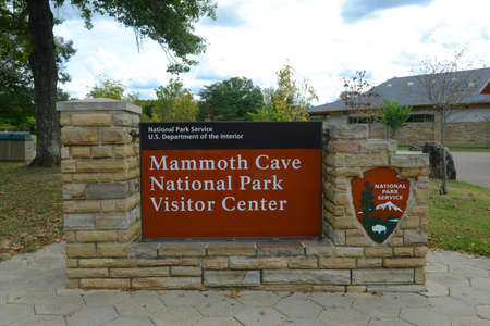 Sign of Mammoth Cave National Park near the visitors center, Kentucky, USA. This national park is also UNESCO World Heritage Site since 1981.