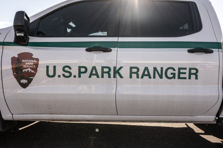 Petrified forest National Park, united States: March 11, 2021: Doors of US Park Ranger Truck parked while protecting a natural resource