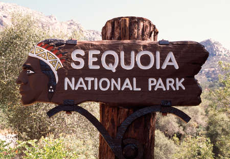 Yosemite National park sign in the entrance,California,usa.