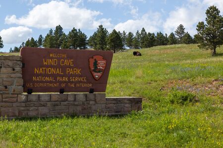 Wind Cave National Park, South Dakota, USA - 10.2021: Entrance sign to park