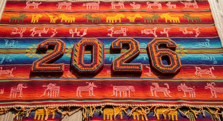 Vibrant handwoven textile with intricate geometric patterns and bright colors. That the image is generated using AI.
