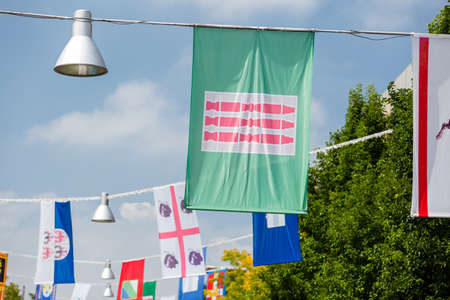 Kiev, Ukraine August 10, 2021: sports pennants of world handball teams