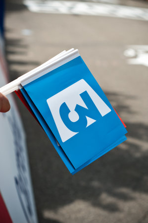 MULHOUSE - FRANCE - 13 th July 2014 - tour de France -flag french television, france 3 channel