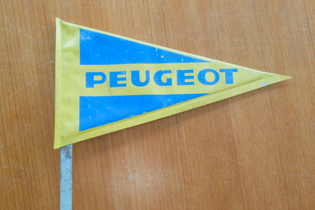 Bordeaux , France - 06 23 2024: peugeot flag blue yellow logo sign and text brand vintage retro car of 1970 seventies