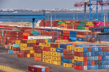 Odessa, Ukraine 09.16.2019. Multi-colored containers in the cargo port and container terminal in Odessa, Ukraine