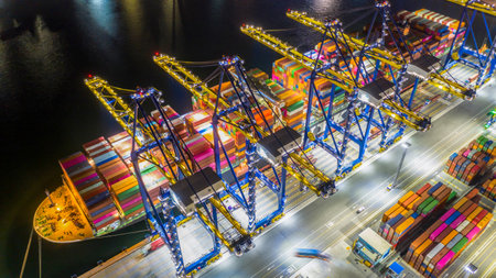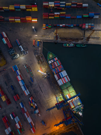 Aerial view container cargo vessel at industrial port in import export business logistic